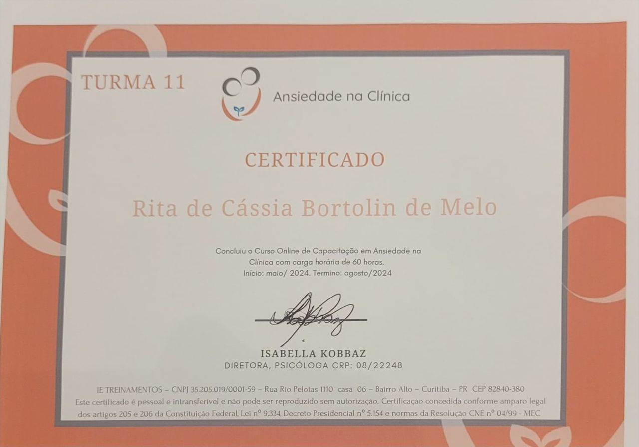 Meu nome é Rita, sou Psicóloga e co-fundadora da Clínica Integral Corpe, sou Especialista em Terapia Cognitivo Comportamental, terapia considerada padrão ouro, por ser a terapia com maior evidências científicas e também tenho formação em Neurociências, formação que permite o olhar ampliado no tratamento, envolvendo cognições, emoções e respostas fisiológicas.